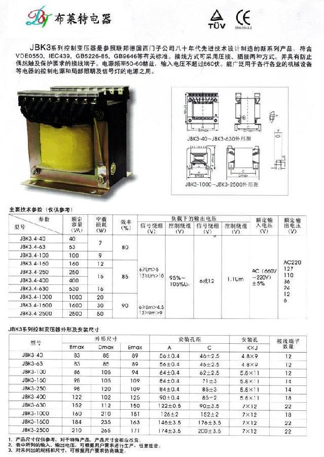 JBK3系列機床控制變壓器