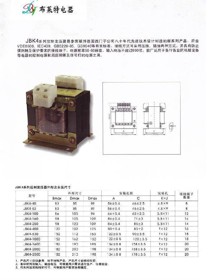JBK4系列機(jī)床控制變壓器