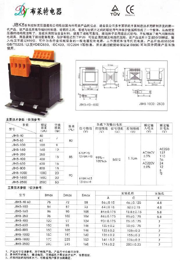 JBK5系列機(jī)床控制變壓器