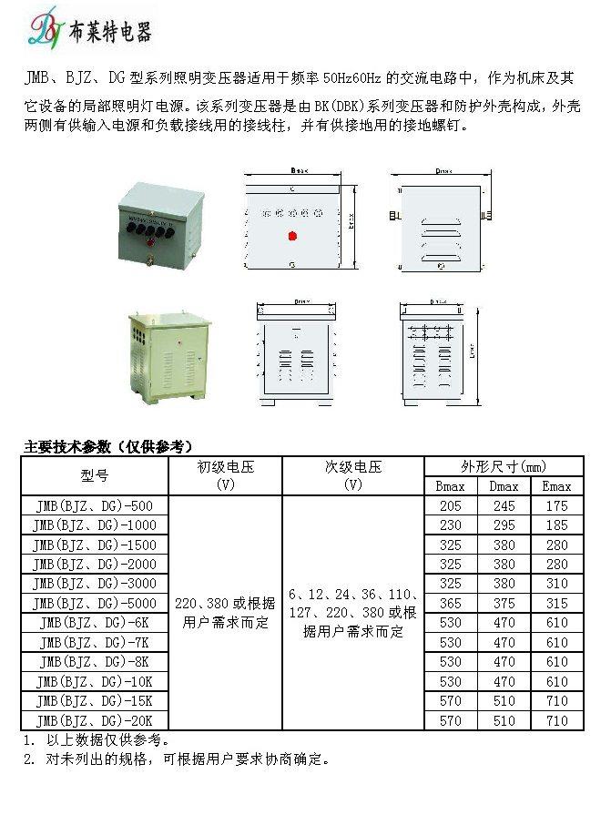 JMB、BJZ、DG型系列照明變壓器